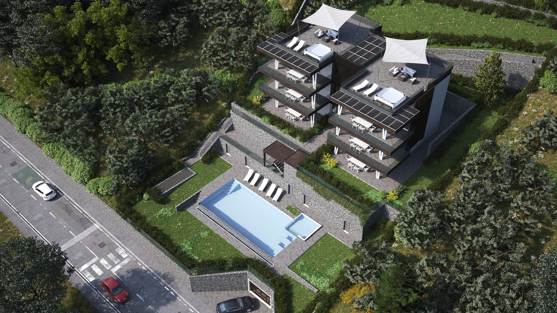 Tutti gli appartamenti sono dotati di finiture di pregio e potranno godere di una piscina condominiale con zona idromassaggio, riscaldata da pannelli solari, immersa nel verde e con un ampio solarium, per momenti di pieno relax.